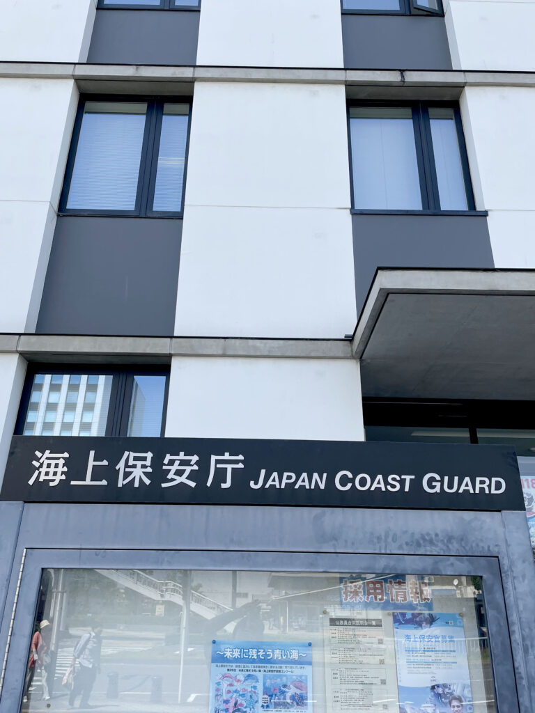 地下鉄から地上に出ると、海上保安庁のビルが(笑)。海の近さを感じます。