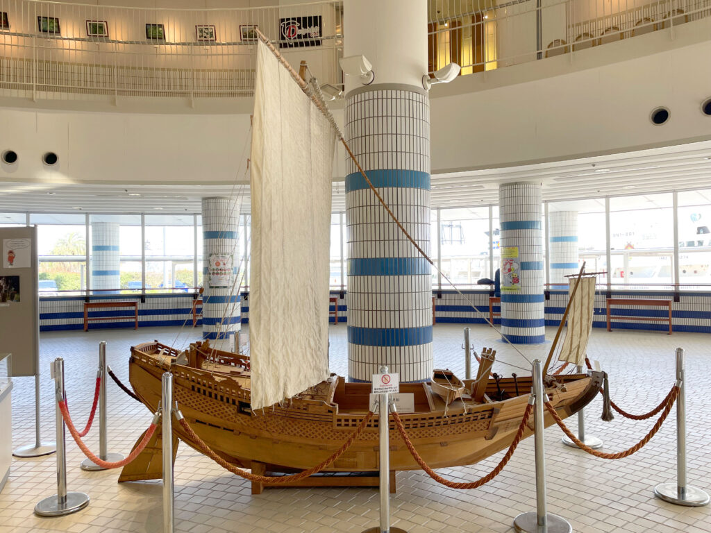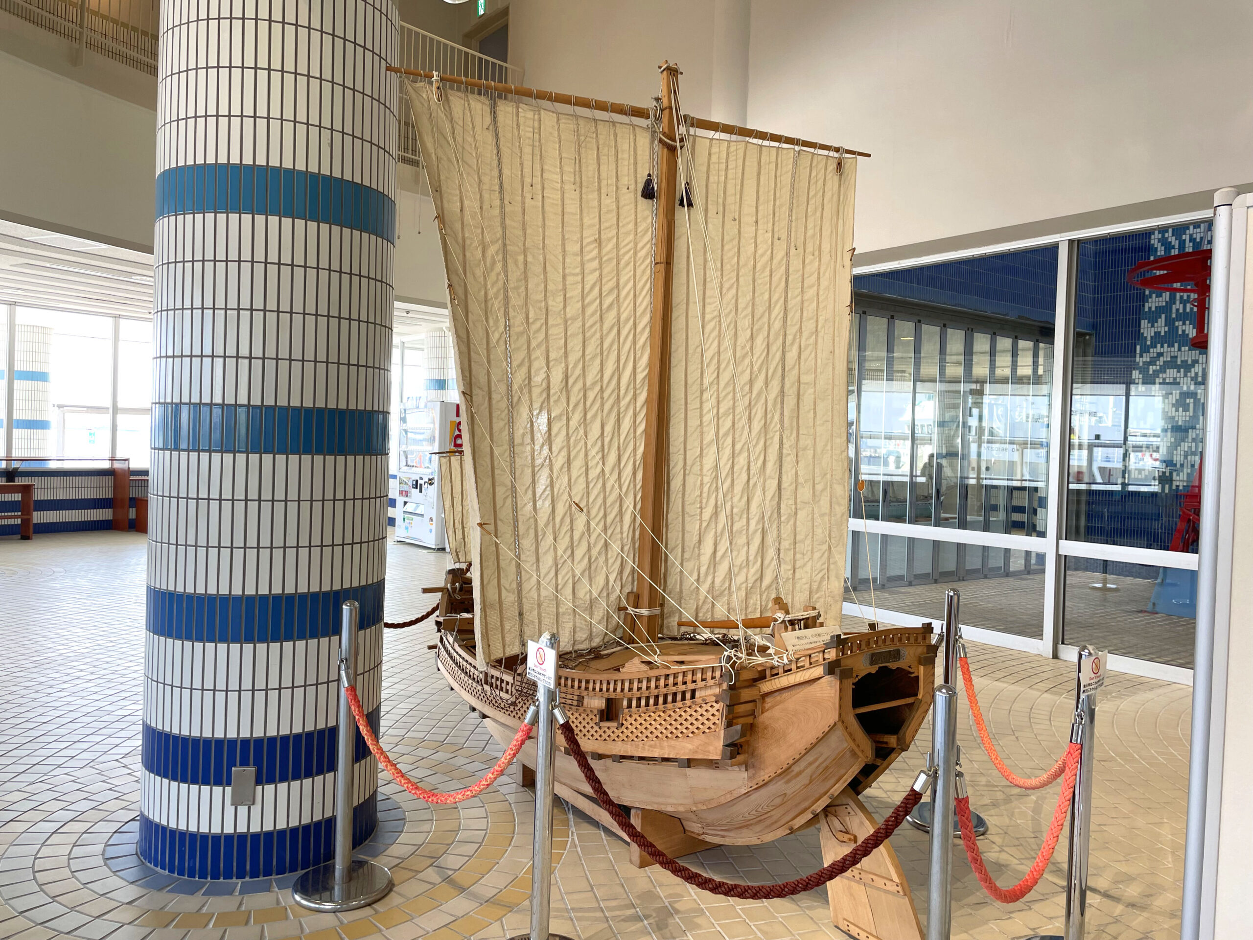 1階に戻ると、なぜか休憩所に木製の1/2スケールっぽい帆船の模型がw