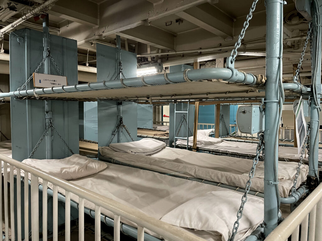 個室が与えられたのはごく一部の士官で、ほとんど右端の画像のようなベッドだったんだろうな…。