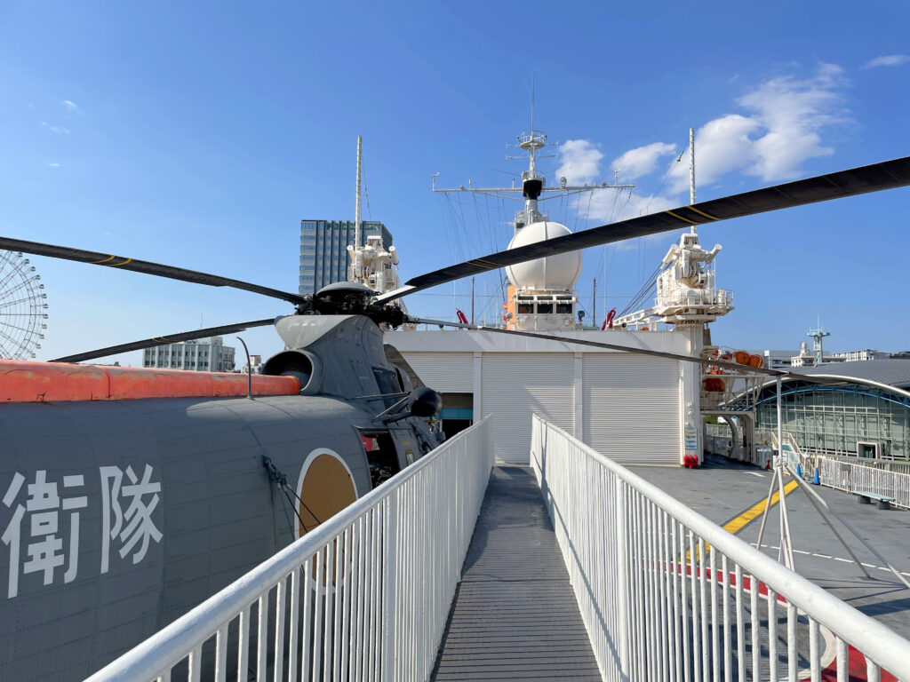 艦橋の前にはヘリポートが。実際の自衛隊のヘリもありました。